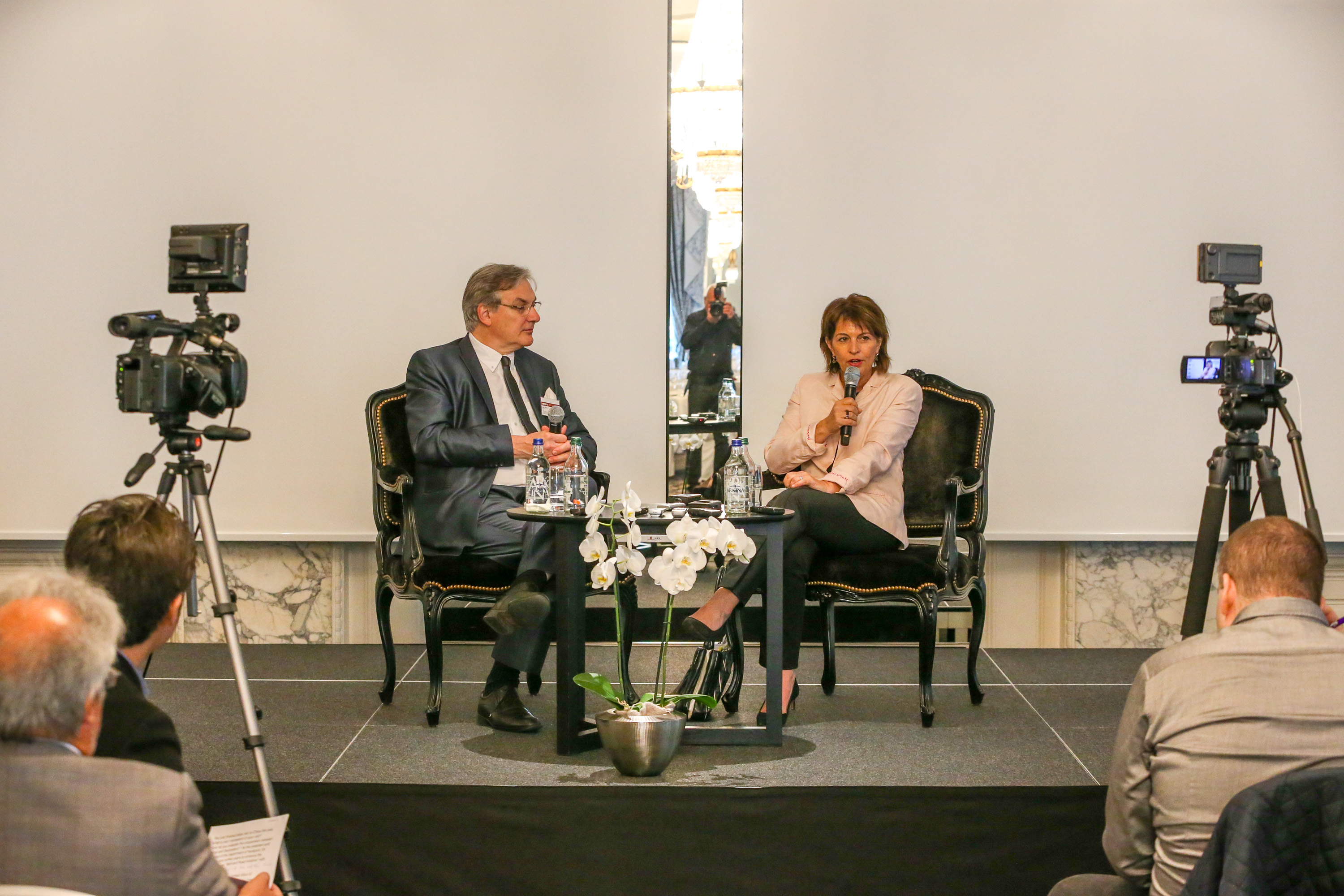 Conférence de presse de l'Association de la Presse Etrangère en Suisse et au Liechtenstein (APES)animée le 2.10.2017, à l'Hôtel Schweizerhof de Berne, par Jean Musy, rédacteur en chef de Radio Zones et président de l'association organisatrice du traditionnel Déjeuner annuel APES avec la Présidence suisse depuis 1948
