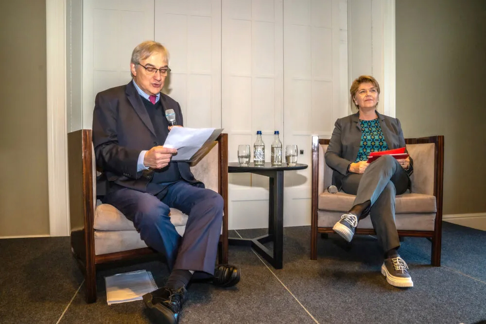 Conférence de presse de l'Association de la Presse Etrangère en Suisse et au Liechtenstein (APES) animée le 3.11.2025, à l'Hôtel Schweizerhof de Berne, par Jean Musy, rédacteur en chef de Radio Zones et président de l'association organisatrice du traditionnel Déjeuner annuel APES avec la Présidence suisse depuis 1948