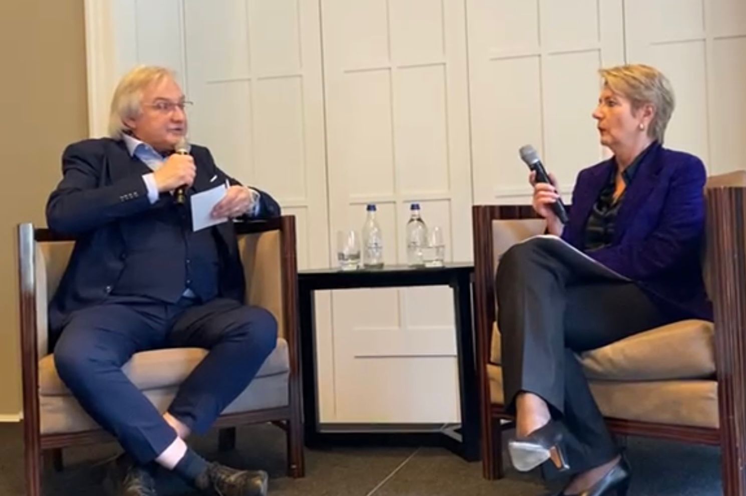 Conférence de presse de l'Association de la Presse Etrangère en Suisse et au Liechtenstein (APES) animée le 14.10.2021, à l'Hôtel Schweizerhof de Berne, par Jean Musy, rédacteur en chef de Radio Zones et président de l'association organisatrice du traditionnel Déjeuner annuel APES avec la Présidence suisse depuis 1948