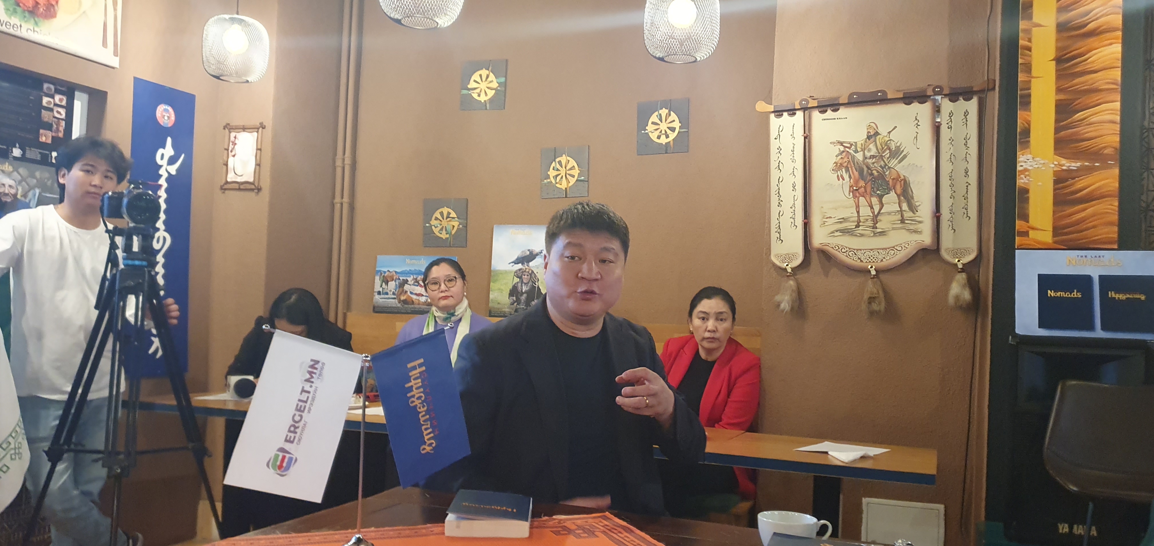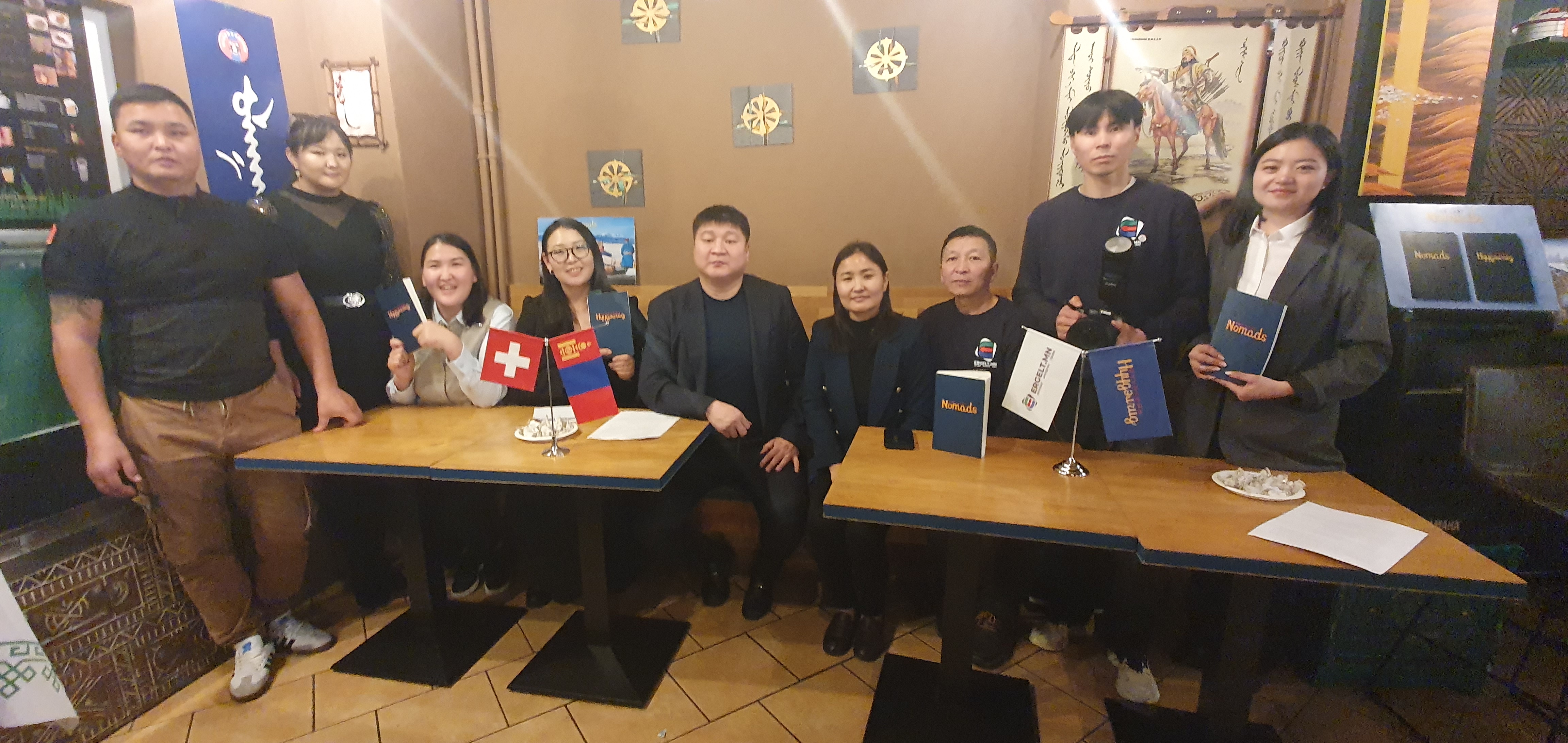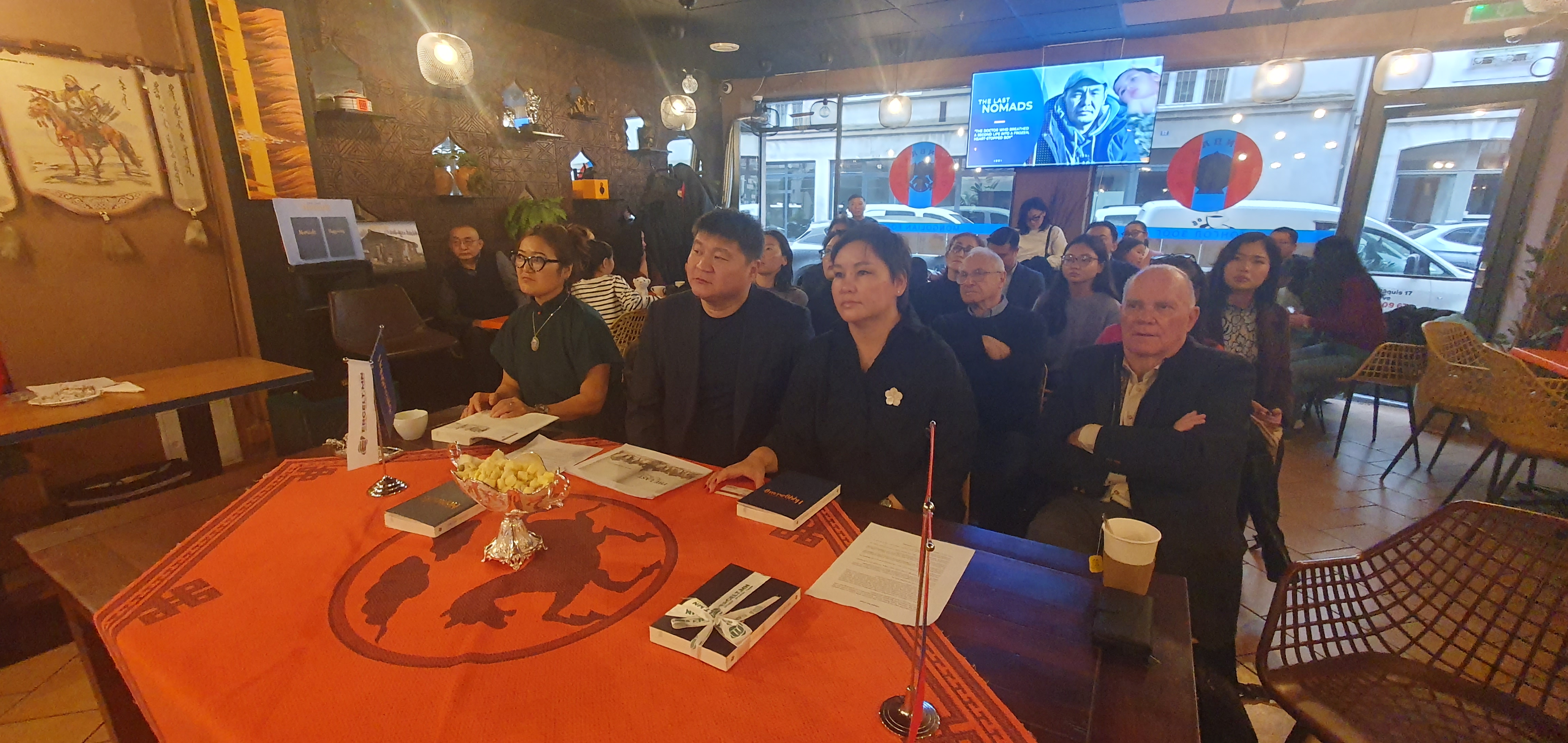 La salle du restaurant mongol le Ulannbaatar, aux Pâquis à Genève, était pleine ce dimanche pluvieux du 16 novembre pour y accueillir l’équipe au grand complet des onze journalistes auteurs collectifs du livre Les derniers Nomades. Une édition du site d’informations Ergelt.mn en bilingue (anglais et mongol), à l’occasion du cinquième anniversaire de son lancement par Oyunlag Ergelt Media Group, à Oulan-Bator, la capitale de la Mongolie.
