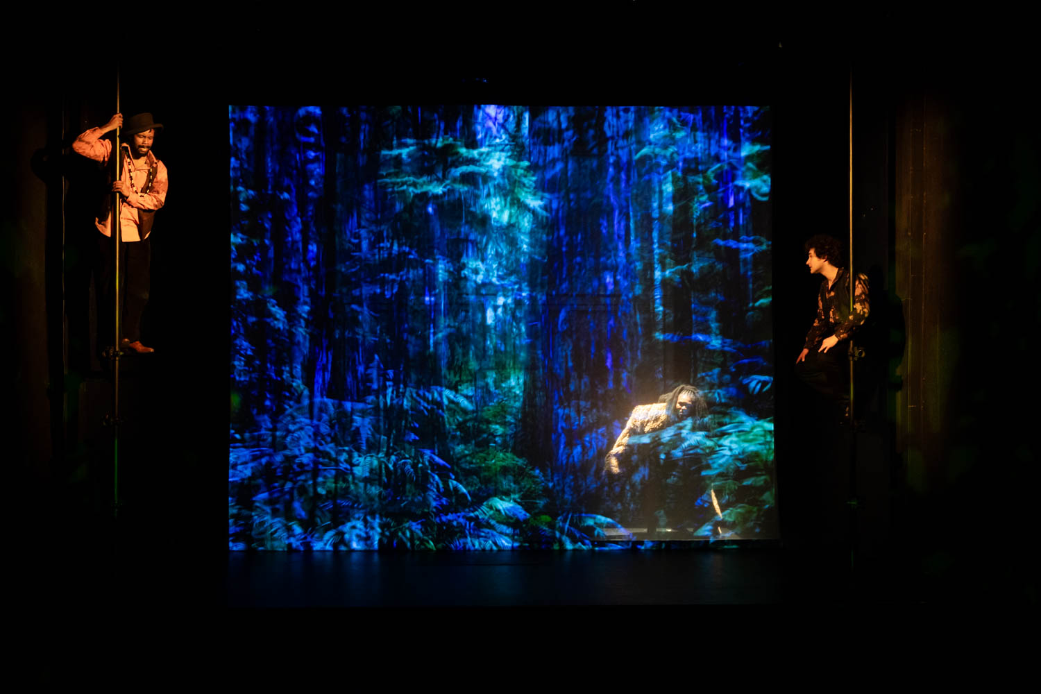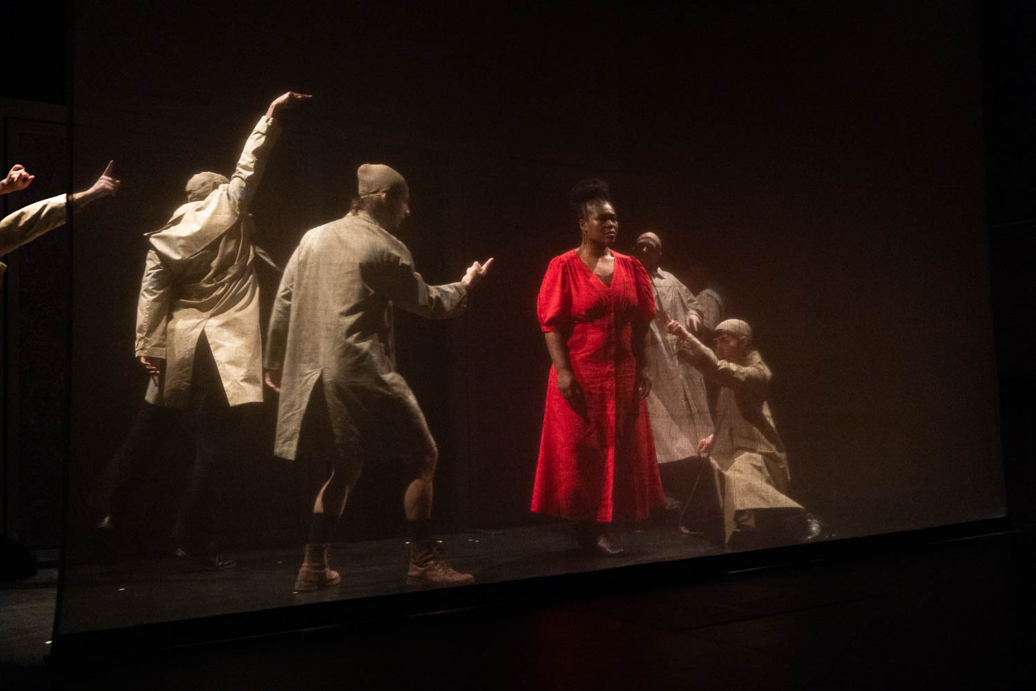 Et quel jeu ! Cinéma, vidéo, choeur antique des mauvaises langues - version symbolique «des réseaux, des médias et de tout ce qui harcèle». Nous nous évadons peu à peu de la prison pour gagner une immense forêt d'Afrique grâce aux images qui décuplent la petite scène du Poche. Un vrai voyage onirique dans l’inconscient de cette femme africaine vers son retour libératoire aux sources ancestrales, afin de retrouver force et vie naturelles.